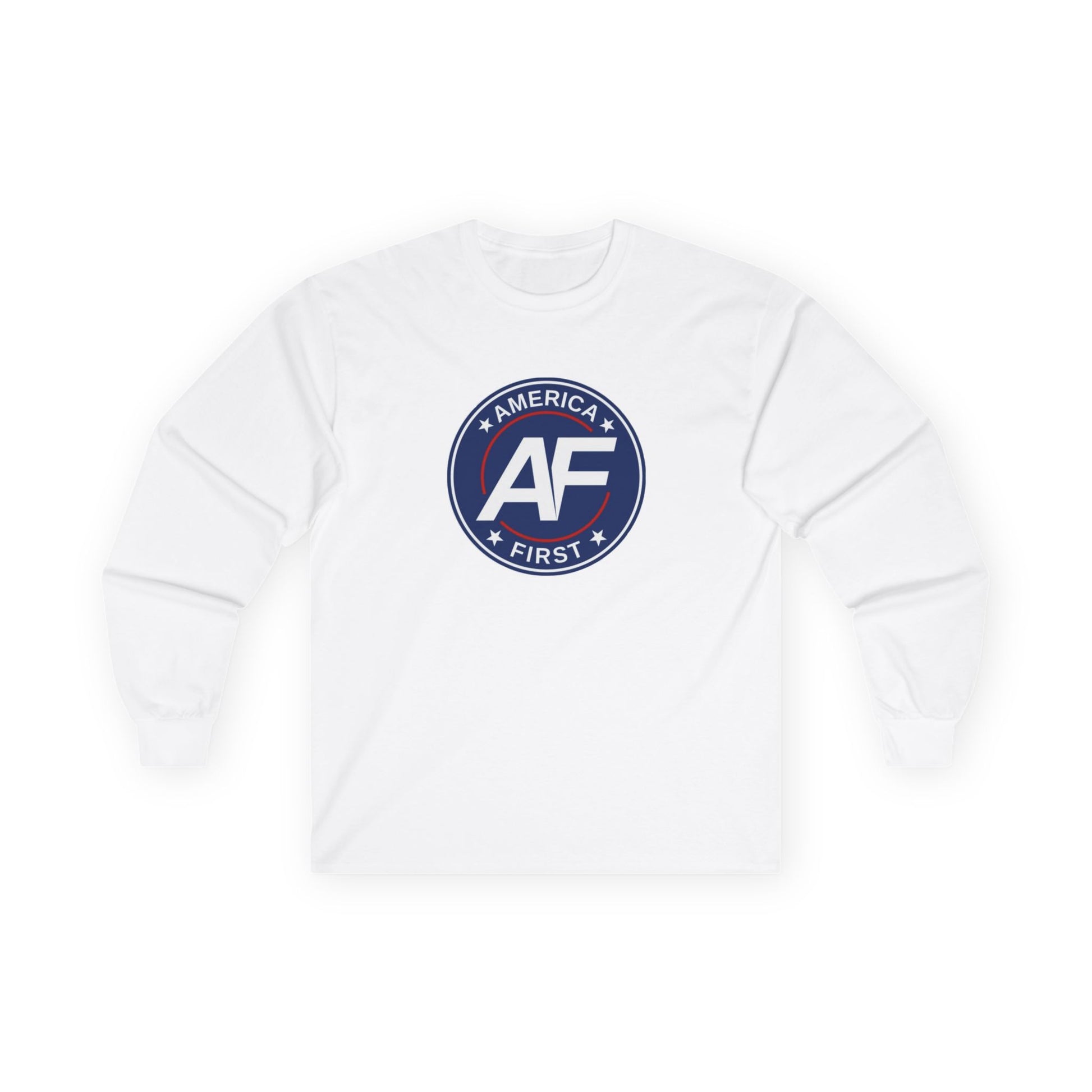 America First AF Logo Long Sleeve Tee — Patriotic Graphic Cotton Shirt